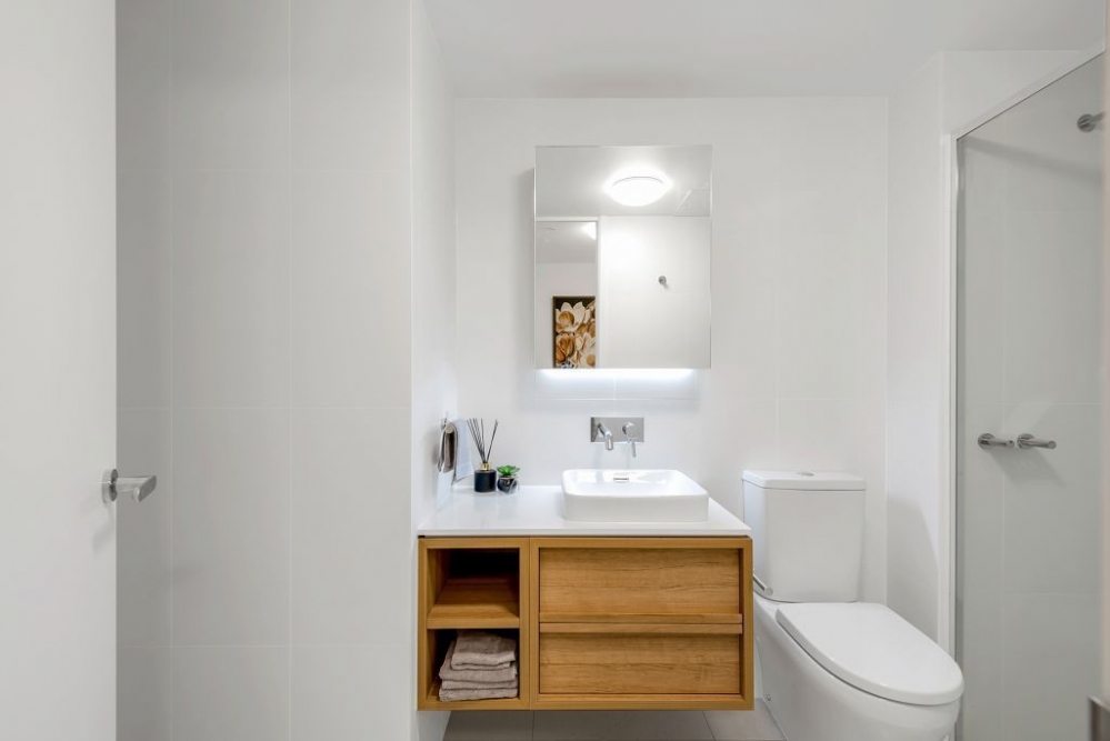 903公寓为经典双卧格局,东西朝向,采光极佳。远可眺望阿德莱德山景,近可俯瞰全城精彩。客厅/厨房采用一体式开放布局,充分利用室内空间,并以人性化设计赋予极佳现代生活体验。厨房配有全套Miele设施,满足居家生活需要。主卧拥有步入式衣帽间,可直接通向主浴室。次卧空间宽敞,安装入墙衣柜,方便物品收纳。